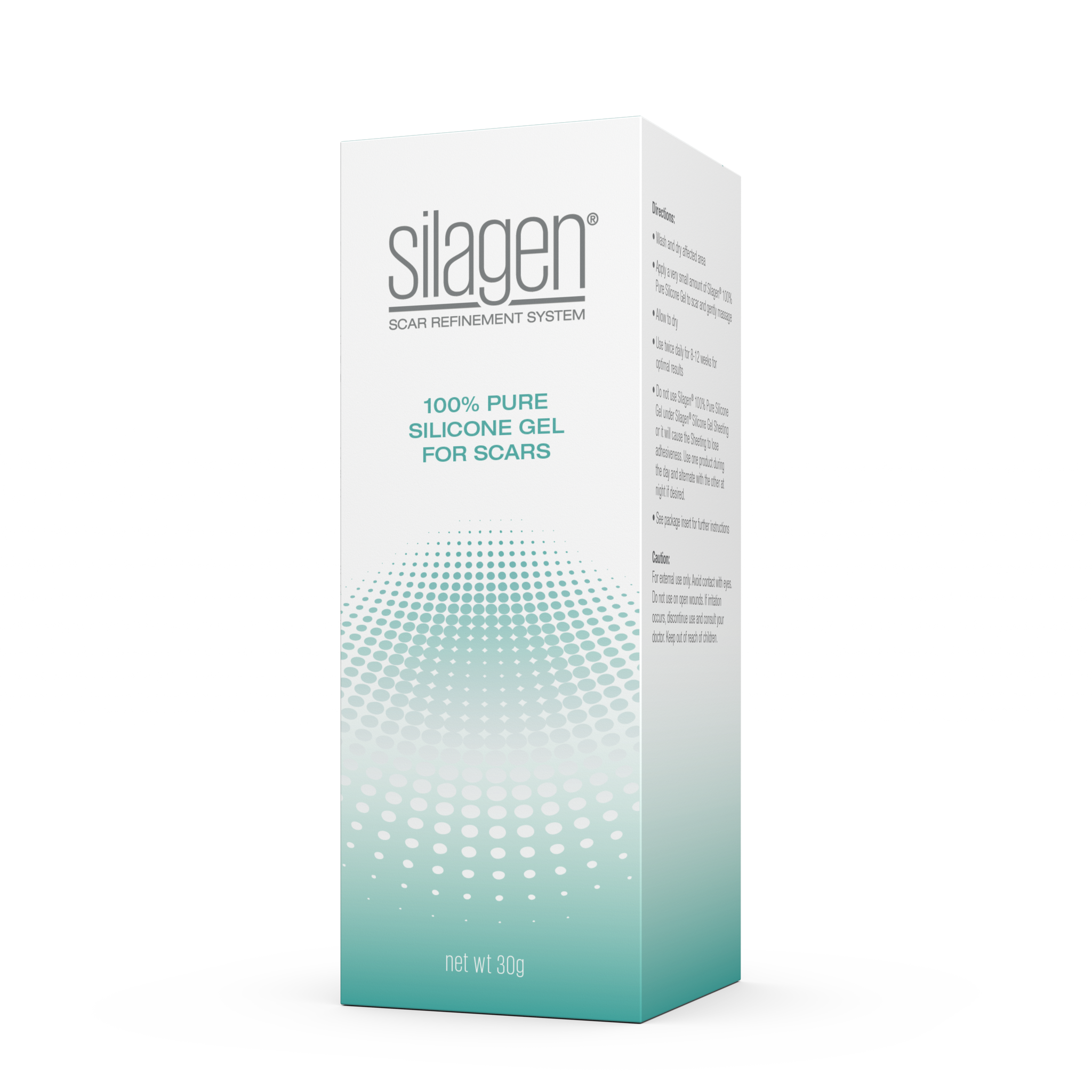 • Do not use Silagen® 100% Pure Gel under Silagen® sheeting or it will cause Silagen® sheeting to lose adhesiveness. Use separately and make sure the scar site is clean and dry before applying Silagen® sheeting.
